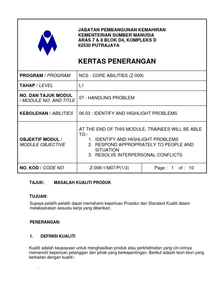 03 - 2282 5333 Faks. 20102011 saya muhamad fikri bin zakaria huruf besar. PENGENALAN Pengurusan kualiti boleh dianggap mempunyai empat komponen utama iaitu perancangan kualiti kawalan kualiti jaminan kualiti dan peningkatan kualiti.